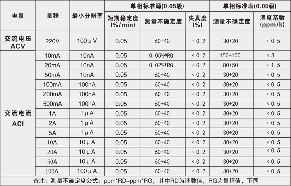 交流電壓輸出:30~480V;交流電流輸出:0.1mA~120A。