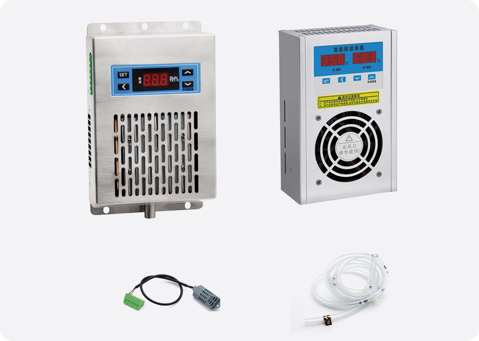 AP322系列智能型除濕裝置是采用半導(dǎo)體制冷除濕方式,主動(dòng)將密閉空間的潮濕空氣在風(fēng)扇的作用下吸入除濕風(fēng)道,空氣中的水汽經(jīng)過(guò)半導(dǎo)體制冷機(jī)構(gòu)后冷凝成水,再通過(guò)導(dǎo)水管排出柜體,可以達(dá)到很好的除濕效果。通過(guò)減低空氣中含水量,使相對(duì)濕度和絕對(duì)濕度同時(shí)下降,幾乎不提高溫度,不產(chǎn)生溫差帶來(lái)的負(fù)面影響,減少了事故的發(fā)生,也不會(huì)因高溫而加速柜內(nèi)器件及柜體的老化。智能型除濕裝置把被動(dòng)防止凝露方式改為主動(dòng)引導(dǎo)凝露,有效的防止柜內(nèi)設(shè)備老化、絕緣強(qiáng)度降低、二次端子擊穿、材料霉變及鋼結(jié)構(gòu)件銹蝕等安全隱患,保證電網(wǎng)安全運(yùn)行。